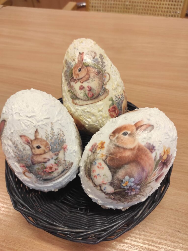 Panie z klubu Dekoratornia spotkały się w dniu 26.02 oraz 12.03 i 26.03.2026 roku, aby wykonać Wielkanocne ozdoby: wianki na drzwi, stroiki, koguty, kurki, jaja, świece, itp. Chcemy, aby nasze domy wyglądały świątecznie, wiosennie, kolorowo i przytulnie. Mogłyśmy wymienić się pomysłami, a niektórym z materiałów dałyśmy drugie życie. Ozdoby robione własnoręcznie nie tylko cieszą oko, ale też przynoszą dużo satysfakcji. Zapraszamy wszystkie Panie chętne do wspólnych prac manualnych na kolejne zajęcia, które odbywają się w co drugi czwartek od godziny 10:00 do 12:00.